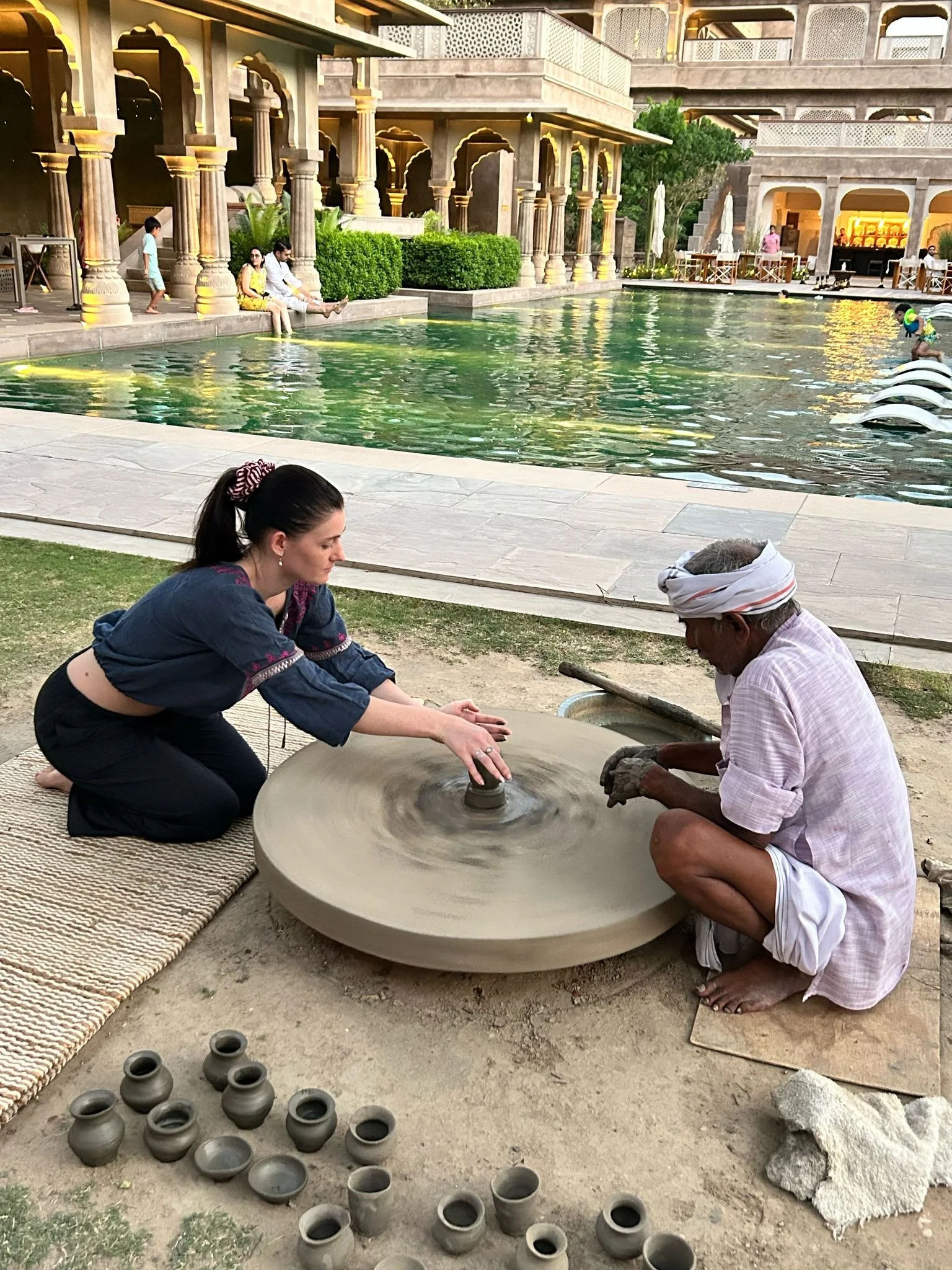 Walking meditation to hilltop temple, Ayurvedic spa treatments, Henna party